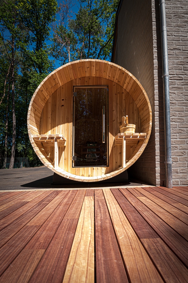 Découvrez quelques photos de l’une de nos dernières réalisations. Ce projet, réalisé dans un environnement naturel, comprenait l’aménagement d’une terrasse accompagné de l’installation d’un sauna. L’objectif était de rendre cet espace, déjà empreint de sérénité, encore plus agréable avec notamment l’aménagement d’une terrasse en bois ainsi que l’installation d’un sauna. Le résultat ? Un espace chaleureux qui respire la nature créé au milieu de cet environnement boisé, un éclairage discret qui se fond dans le paysage et un espace bien-être qui saura satisfaire les personnes à la recherche d’un moment relaxant.